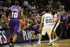 2007年西部半决赛,太阳和马刺在前4场战成2-2,G5中前者大部分时间都是领先的姿态,但是在最后时刻被逆转,在G6也难挽败局,最终大比分2-4出局无缘西决。G4霍里将纳什撞倒,小斯和迪奥进场后被禁赛一场。